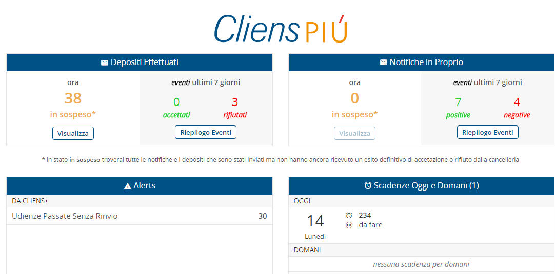 Cliens Più è il software basato sulla tecnologia cloud che ti offre un innovativo servizio di supporto per la tua attività legale, semplificando il tuo lavoro e migliorando le tue performance professionali.