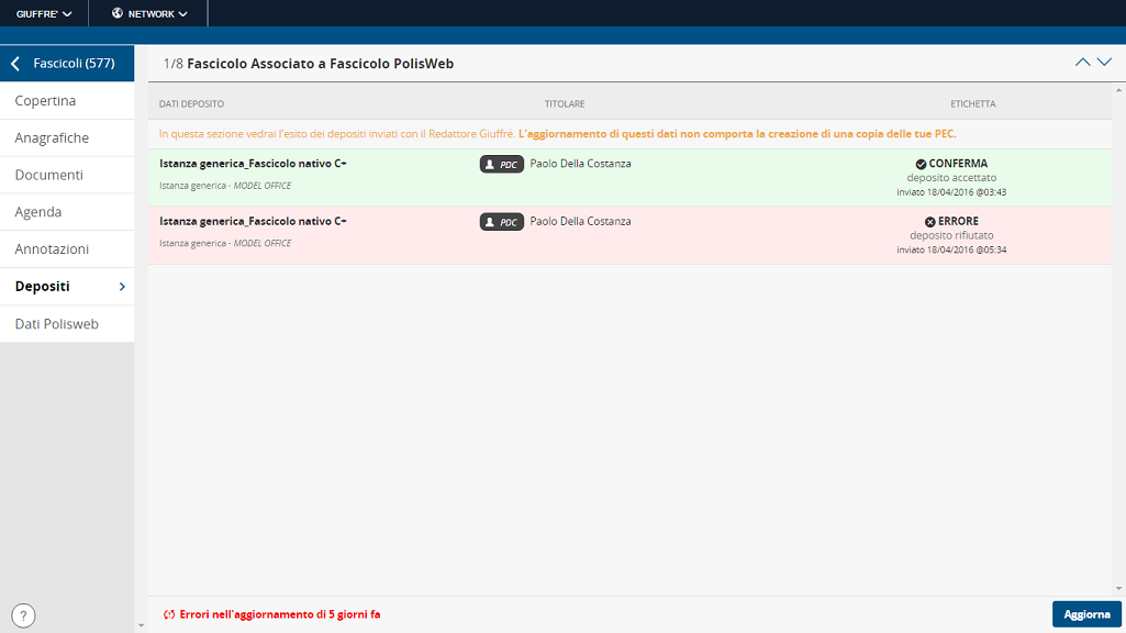 Con CliensPiù avrai la possibilità di interagire con numerosi servizi editoriali online: potrai accedere al portale ilProcessoTelematico.it e, attraverso l’integrazione con il Punto d’Accesso Giuffrè, potrai consultare la giurisprudenza correlata al fascicolo Polisweb in base all’oggetto del fascicolo e all’autorità giudicante.