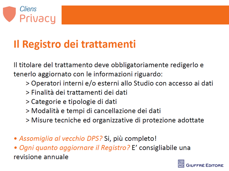 Il software ti fornisce il registro dei trattamenti, documento indispensabile in caso di verifiche da parte dell'autorità di controllo.